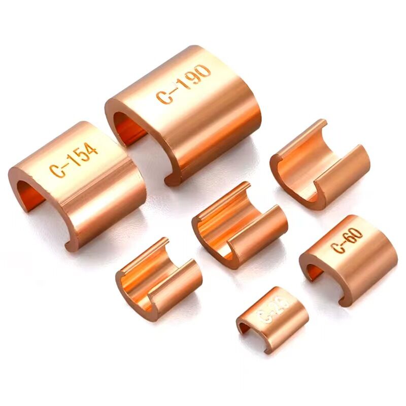 C shape copper connector also named C tap compression connector,it is used for copper tap and parallel connections of stranded copper cables in earthing system.CROP C shape copper connector has a full fange,the suitable section of conductor form 7.5mm2 to 895mm2.The CCT-895 is our new type customized by one of our customer.