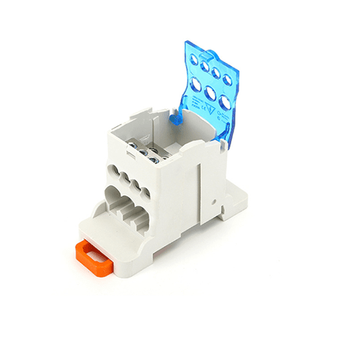 The UKK-80 din rail terminal block box is a universal power junction box,which is used in the distribution cabinet,distribution box and other high voltage cabinet to branch the main line.It has 1 input hole and 6 output hole.The cable range of 1 input hole is 6 to 16 mm2,the cable range of 6 output hole is 4x(2.5 to 6)mm2,2x(2.5 to 16)mm2.